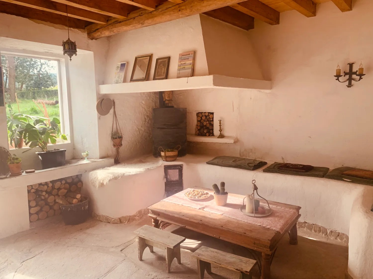 Zij is gedreven door het geloof dat de aarde zoveel mogelijk plekken nodig heeft waar mensen, dieren en planten in harmonie kunnen samenleven. Dit huis is bedoeld als één van die plekken. Als holistisch stemcoach en artiest Milou Mignon organiseert zij retraites, co-living en kunstenaarsresidenties. Het terrein beslaat ongeveer één hectare, wordt omringd door bomen en bevindt zich aan de rand van een klein dorp. Het huis heeft vijf slaapkamers en veel ruimte om je tent of busje op en neer te zetten.